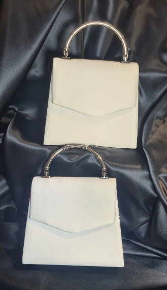 Coqueta cartera colores blanco y beig , incorpora cadena para colgarlo del hombro.